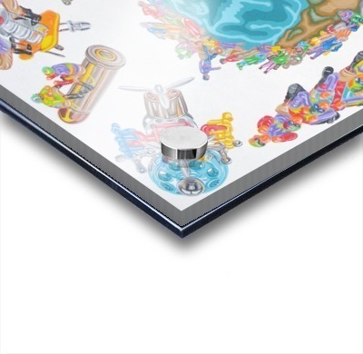 Printed to the edge - Ready to hang - provided with 4 premium polished aluminum stand off ( wall screws and mounting hardware provided )