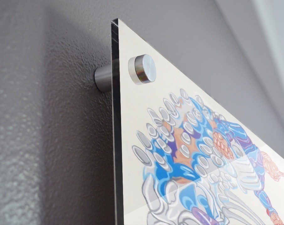 Printed to the edge - Ready to hang - provided with 4 premium polished aluminum stand off ( wall screws and mounting hardware provided )
