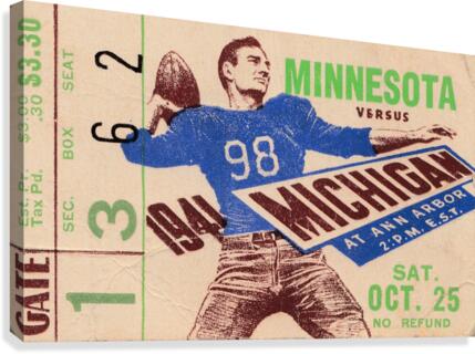 ABOUT THIS ARTWORK: 1941 MICHIGAN VS. MINNESOTA FOOTBALL TICKET CANVAS