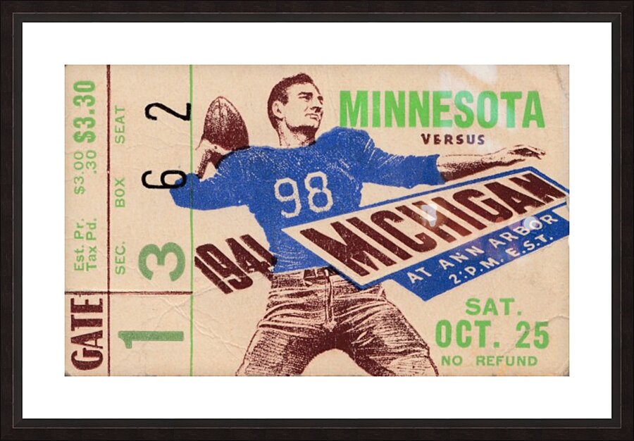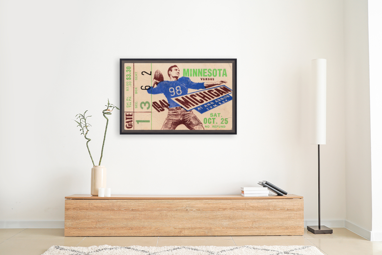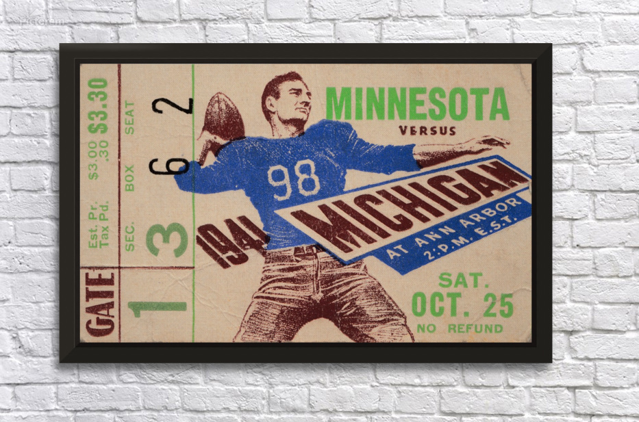 1941 Michigan vs. Minnesota Football Ticket Canvas Picture Frame Printing