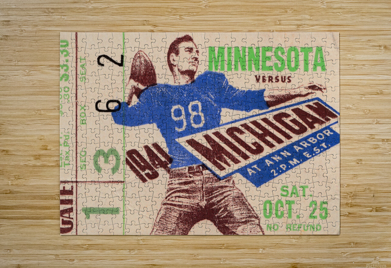 1941 Michigan vs. Minnesota Football Ticket Canvas Row One Brand Puzzle printing