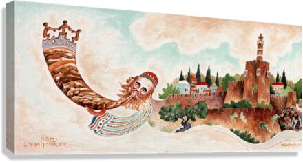 My use of symbolism has developed over time. I slowly came to appreciate that I was making repeated use of symbolic elements as a poet plays with new turns of phrase. One can find in my work frequent groupings of seven or eighteen (numerologically representative of life (or chai) in Hebrew) and twenty-six (corresponding to an important Divine Name). Drops of dew are conspicuous, as are tongues of flame, the Holy Temple, the City of Jerusalem, winged candles, tefillin and tzitzit. Also angels’ wings, ladders, musical instruments and – broadly speaking- connections between heaven and earth. Baruch Nachshon