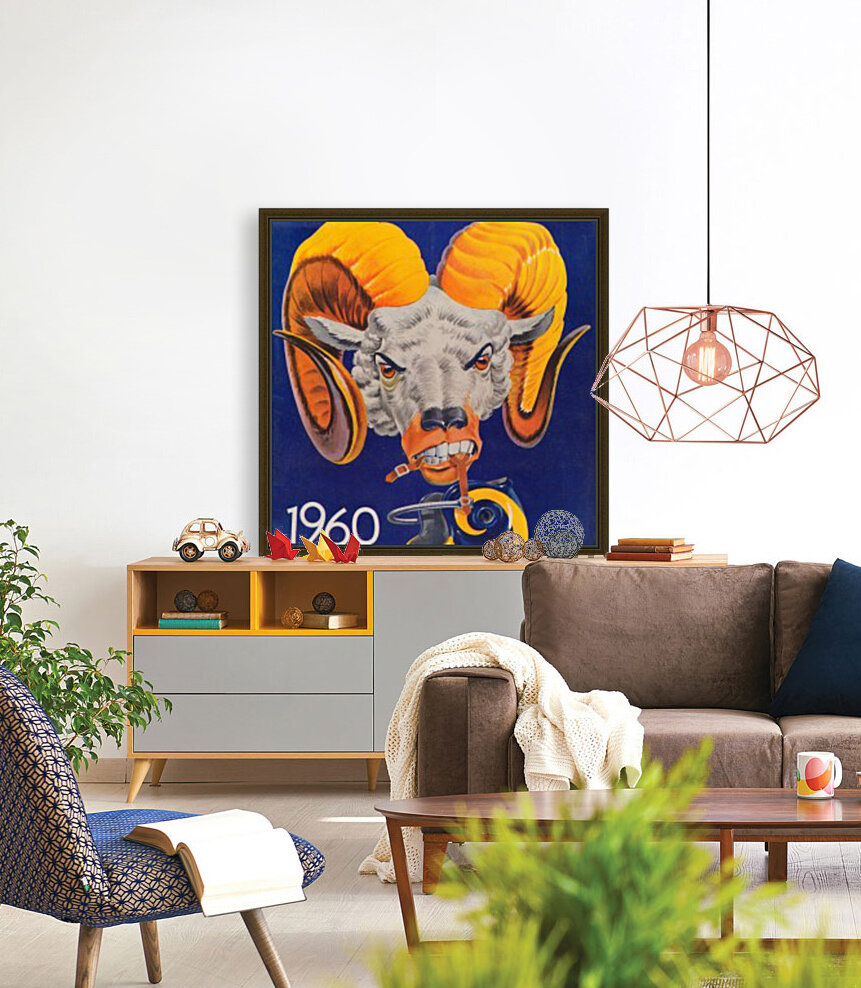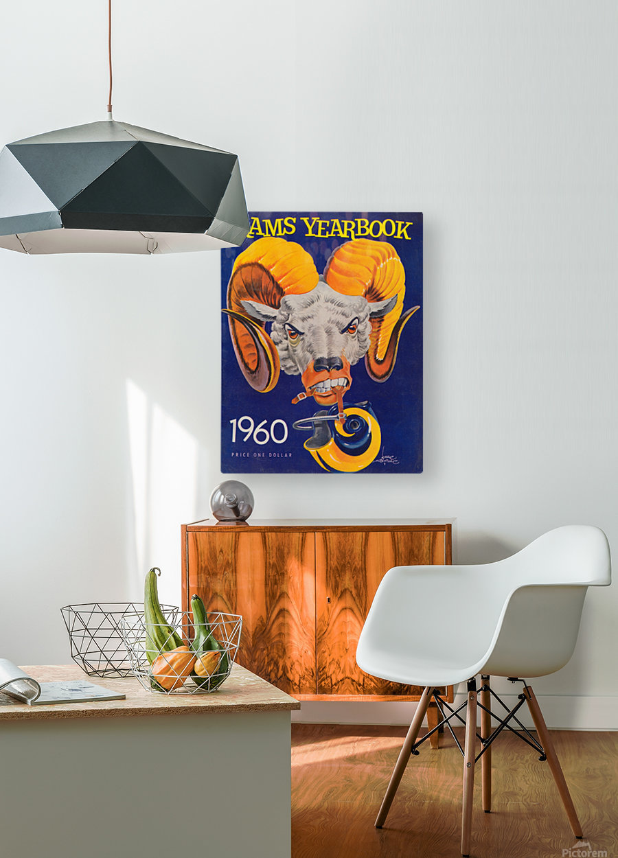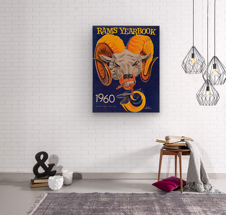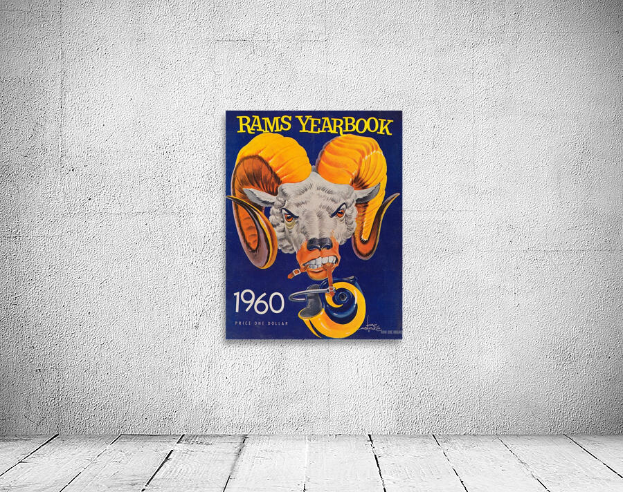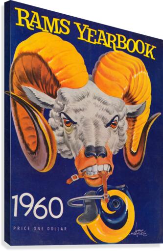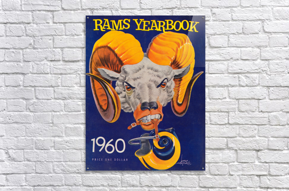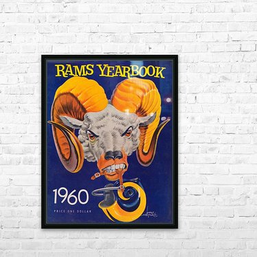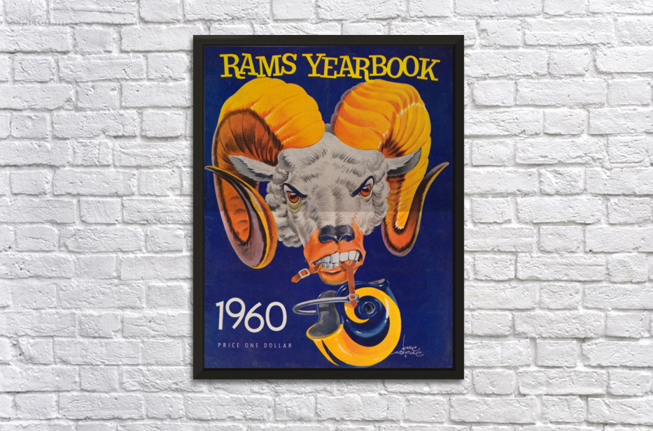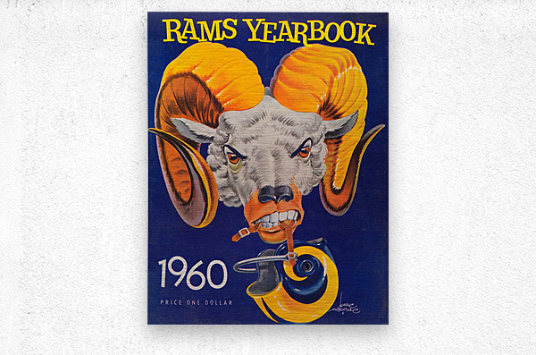 1960 LA Rams Vintage Art | Karl Hubenthal Artwork | Row One Brand | 14.5k Historic Sports Prints | This Row One Brand vintage 1960 Rams Yearbook cover art reproduction by famous LA artist Karl Hubenthal will look super in your game room or office.| Row One Brand's historic sports prints are not affiliated with, licensed, sponsored, authorized, or endorsed by any team, league, artist, other brand, or any licensing entity. Only non-copyrighted sports art is used by Row One to create our historic sports prints.