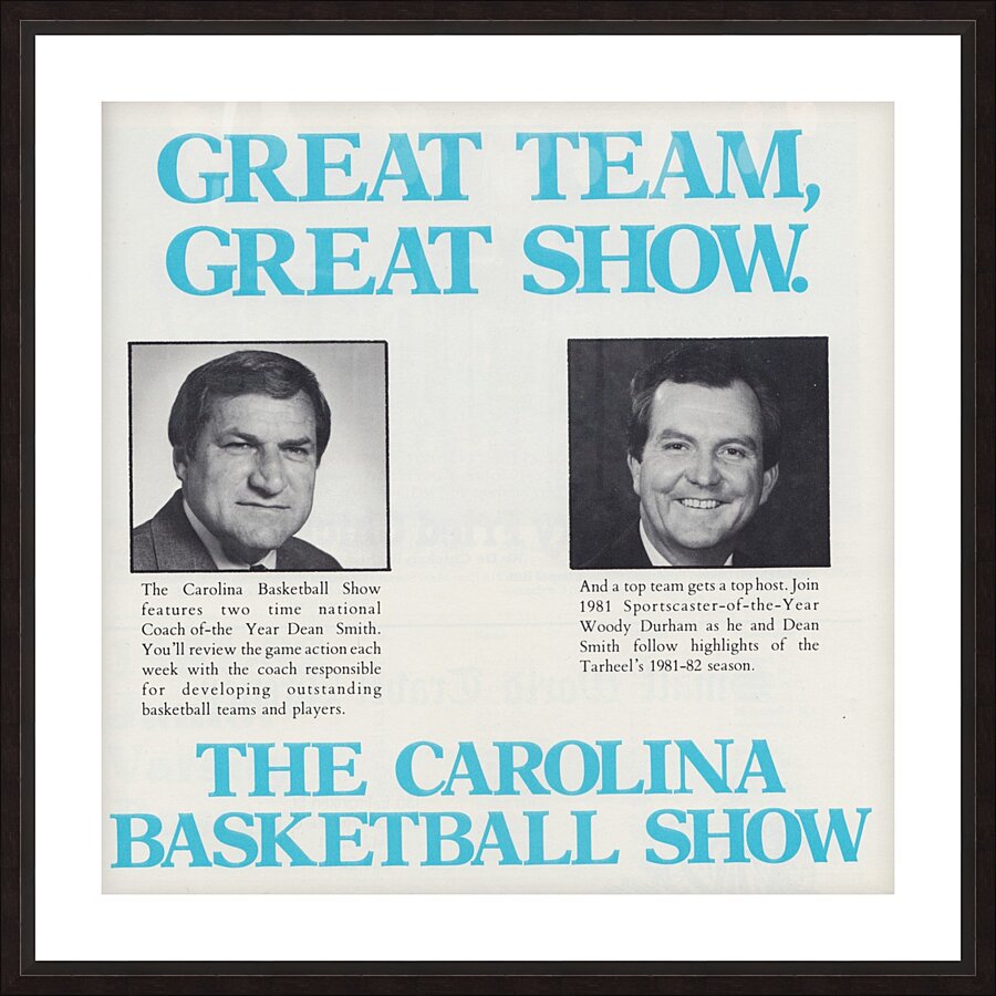 This throwback Carolina Basketball show ad shows one of the greatest coached in college basketball history, Dean Smith.