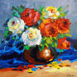Bouquet of red and white roses oil painting on cardboard canvas, unframed 100 % handmade palette knife and high quality oil, for interior or as a gift...[+]