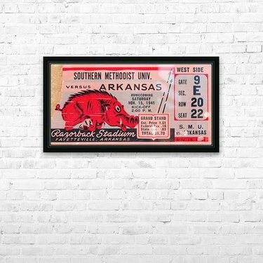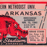 1941 SMU Mustangs vs. Arkansas Razorbacks college football ticket stub art poster by Row One Brand. | Row One | As seen on Forbes.com Americas Best V...[+]