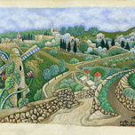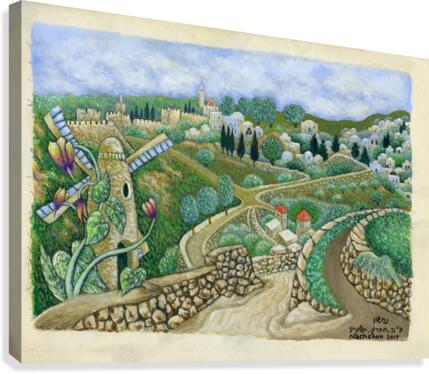 My use of symbolism has developed over time. I slowly came to appreciate that I was making repeated use of symbolic elements as a poet plays with new turns of phrase. One can find in my work frequent groupings of seven or eighteen (numerologically representative of life (or chai) in Hebrew) and twenty-six (corresponding to an important Divine Name). Drops of dew are conspicuous, as are tongues of flame, the Holy Temple, the City of Jerusalem, winged candles, tefillin and tzitzit. Also angels’ wings, ladders, musical instruments and – broadly speaking- connections between heaven and earth. Baruch Nachshon