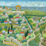 My use of symbolism has developed over time. I slowly came to appreciate that I was making repeated use of symbolic elements as a poet plays with new turns of phrase. One can find in my work frequent groupings of seven or eighteen (numerologically representative of life (or chai) in Hebrew) and twenty-six (corresponding to an important Divine Name). Drops of dew are conspicuous, as are tongues of flame, the Holy Temple, the City of Jerusalem, winged candles, tefillin and tzitzit. Also angels’ wings, ladders, musical instruments and – broadly speaking- connections between heaven and earth. Baruch Nachshon