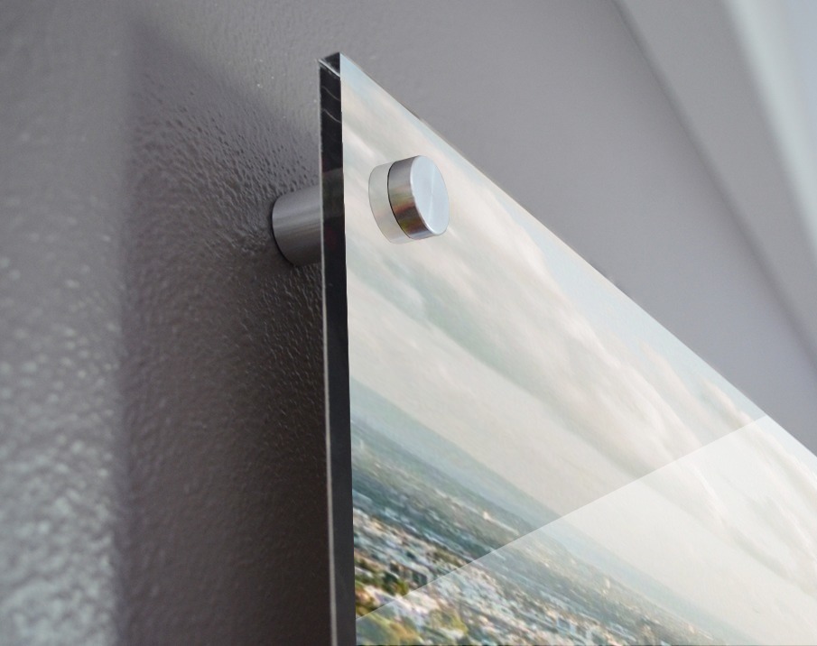 Printed to the edge - Ready to hang - provided with 4 premium polished aluminum stand off ( wall screws and mounting hardware provided )