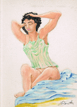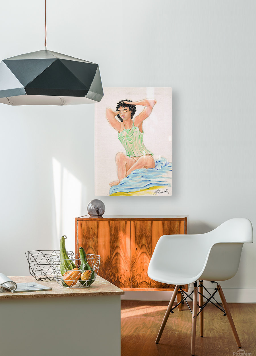 The image of a young woman on waking up is repeated, in the various painting techniques that Maestro Antonio Abussi wanted to dedicate to the customers of the Pictorem site. This drawing is made with colored crayons.