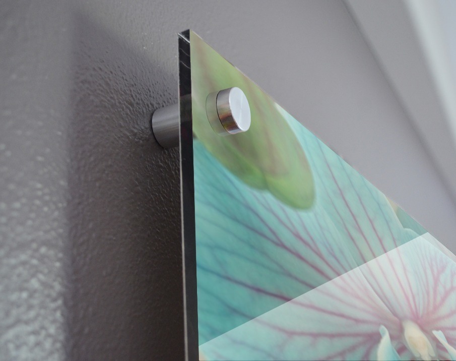 Printed to the edge - Ready to hang - provided with 4 premium polished aluminum stand off ( wall screws and mounting hardware provided )