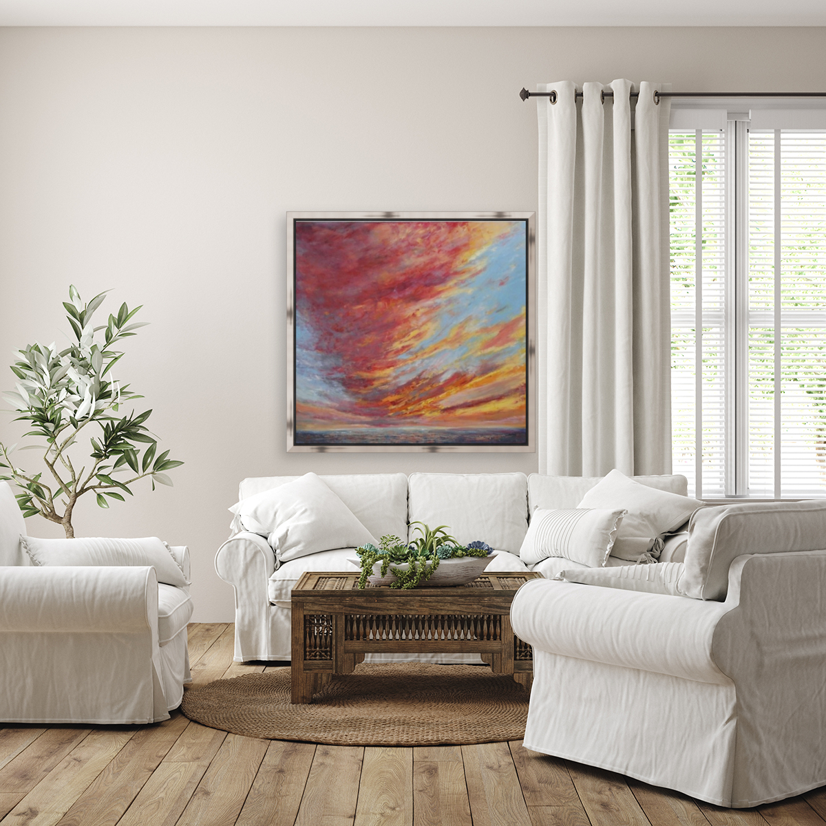 WALKING UNDER SUNSET SKY original skyscape painting Wall Decor Frame
