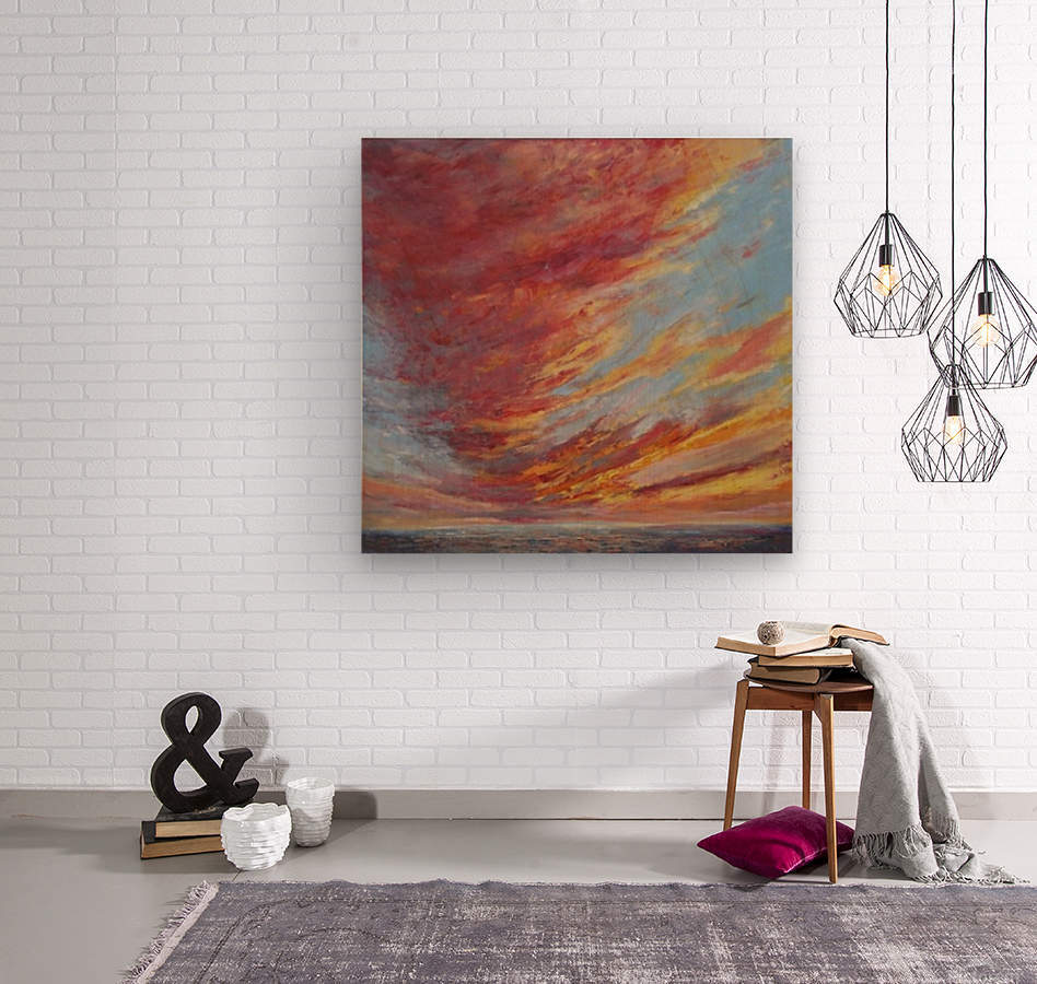 WALKING UNDER SUNSET SKY original skyscape painting Wood print