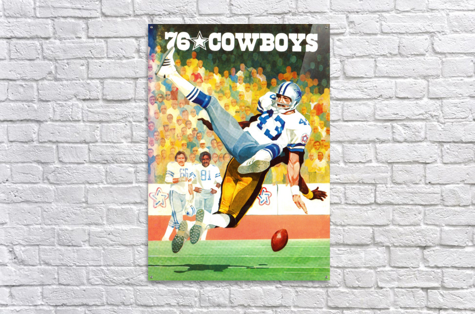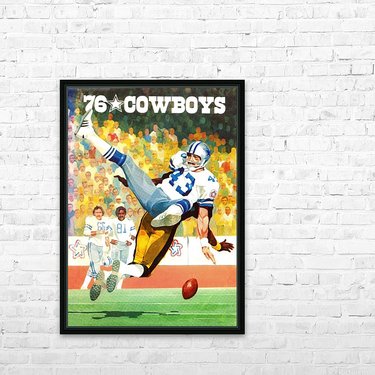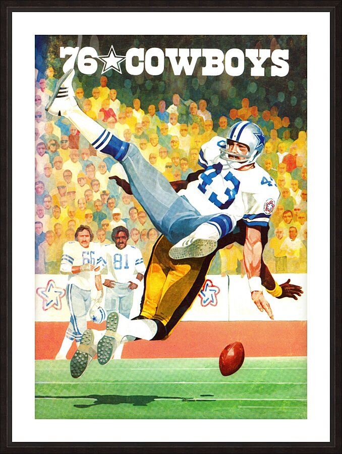 1976 Dallas Cowboys Wall Art | Row One | Over 17,000 Historic Sports Wall Art Prints | If you love the Dallas Cowboys, you will love this authentic 1976 Dallas Cowboys football art print from Row One Brand. Created from authentic '76 Steve Harris cover art in our collection, this Row One Brand retro football art will look fantastic in your game room or office. Row One Brand's historic football wall art prints are not affiliated with, licensed, sponsored, authorized, or endorsed by any team, league, other artist, athlete, other brand, or any licensing entity. Row One only uses non-copyrighted historic sports memorabilia dating back to 1876 to create our historic sports wall art prints.