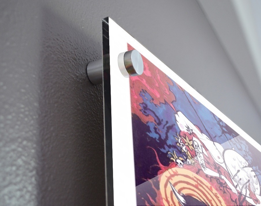 Printed to the edge - Ready to hang - provided with 4 premium polished aluminum stand off ( wall screws and mounting hardware provided )