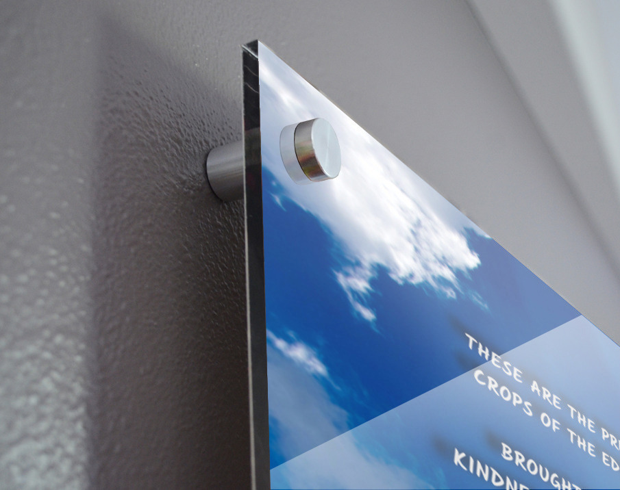 Printed to the edge - Ready to hang - provided with 4 premium polished aluminum stand off ( wall screws and mounting hardware provided )
