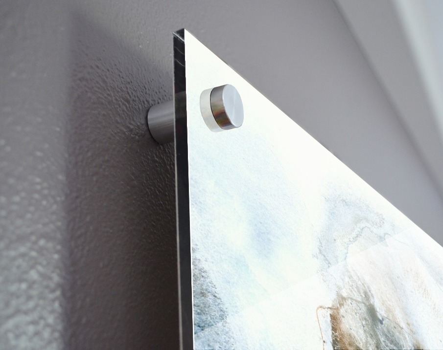 Printed to the edge - Ready to hang - provided with 4 premium polished aluminum stand off ( wall screws and mounting hardware provided )
