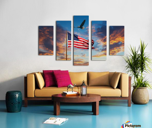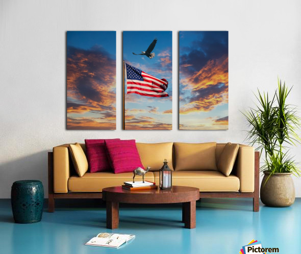 American Flag on Old Flagpole at Sunset with Eagle Canvas print