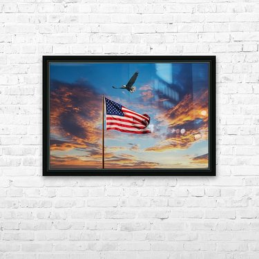 American Flag on Old Flagpole at Sunset with Eagle Picture Frame Printing