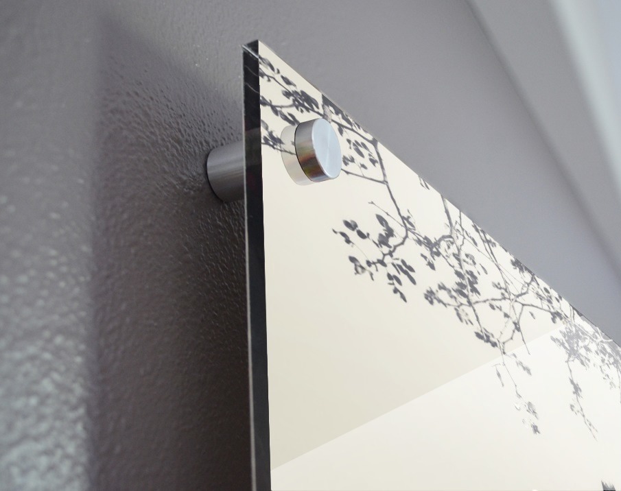 Printed to the edge - Ready to hang - provided with 4 premium polished aluminum stand off ( wall screws and mounting hardware provided )