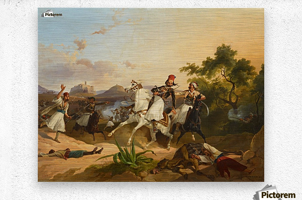 Palikaren-Kampf. Szene aus dem Griechischen Befreiungskrieg  Wood print