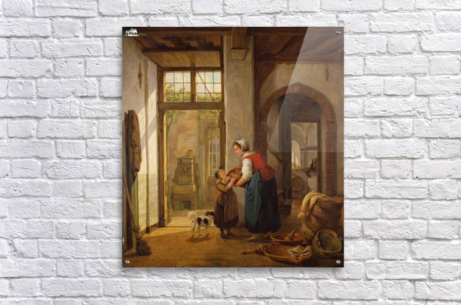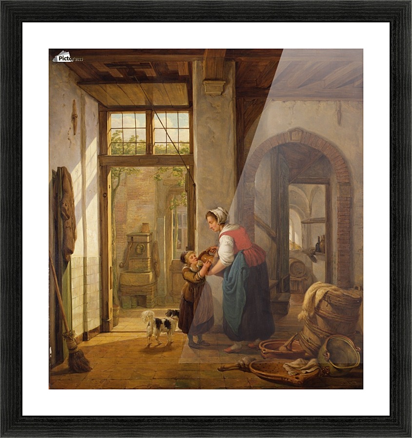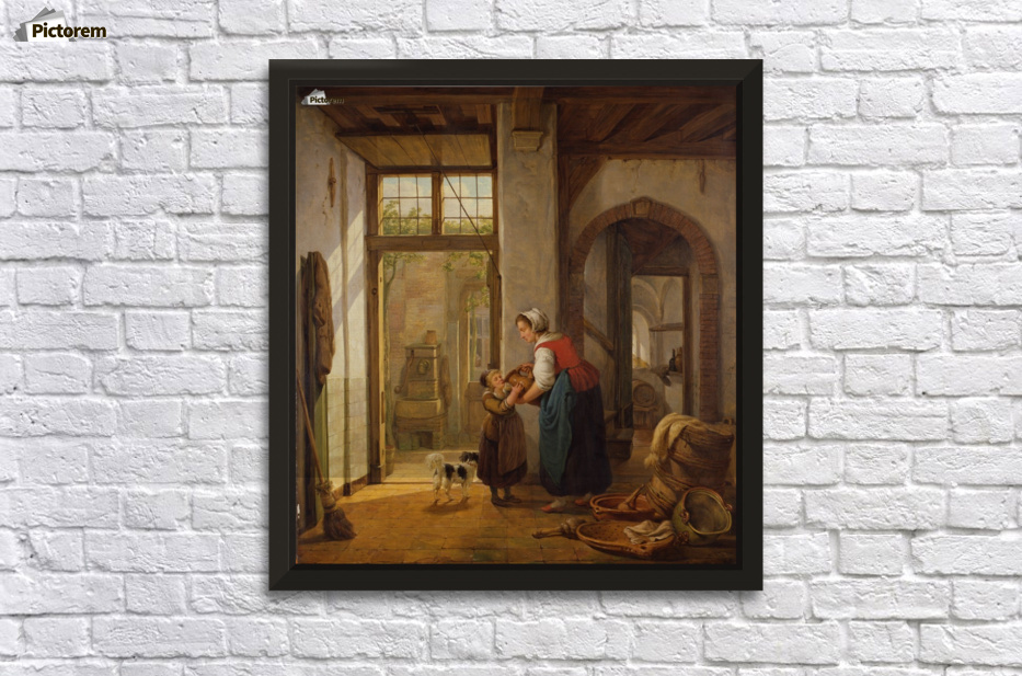 Get this artwork "Binnenhuis met vrouw en kind" in a framed print.