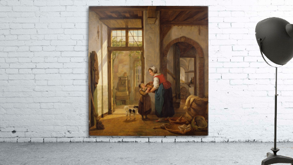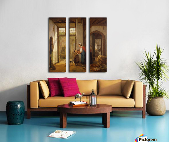 BINNENHUIS MET VROUW EN KIND ABRAHAM VAN STRIJ  Canvas Print