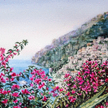 Positano Italy is the watercolor landscape painting by the artist Irina Sztukowski.