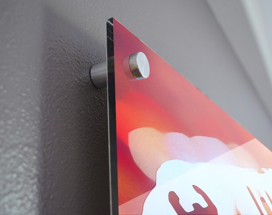 Printed to the edge - Ready to hang - provided with 4 premium polished aluminum stand off ( wall screws and mounting hardware provided )