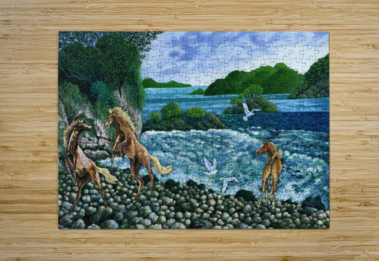 Unlike traditional printing — This artwork is produced with by sublimation print. We utilize heat and pressure to transfer images directly into the surface of the Puzzle, bonding your image to the substrate at the molecular level.