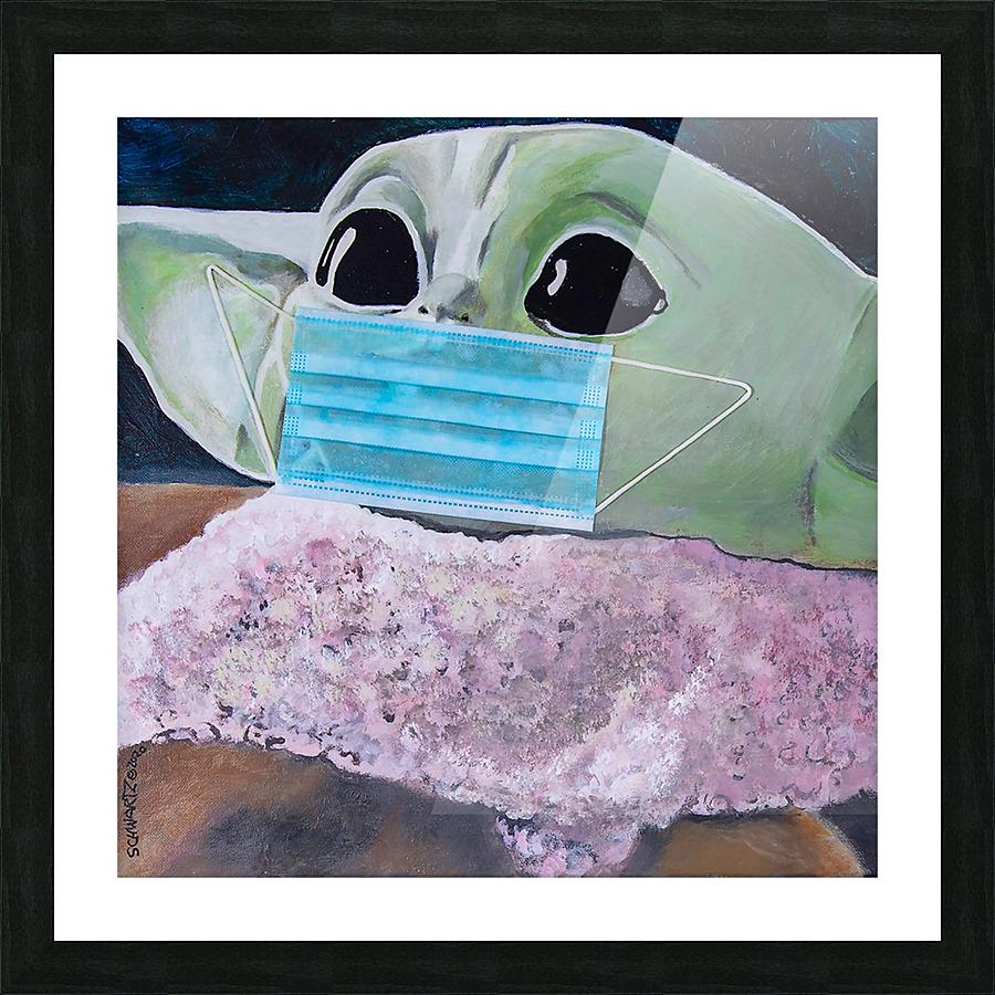 $125.00 – $1,100.00 Baby Yoda? – Inspired by Disney’s Mandalorian series, custom acrylic painting with a COVID-19 theme. Comes in three sizes: 10 inches x 8 inches 20 inches x 16 inches 40 inches x 32 inches. Heavy-duty stretcher pine, with high-grade canvas. Double sealed with clear acrylic. Real COVID-19 mask applied to paint. Custom orders welcome, just contact me. Ships in 1 week from the order date. Every order is custom painted, so no two are alike, 100% custom. http://thesamschwartzartwork.com/product/baby-yoda-19/