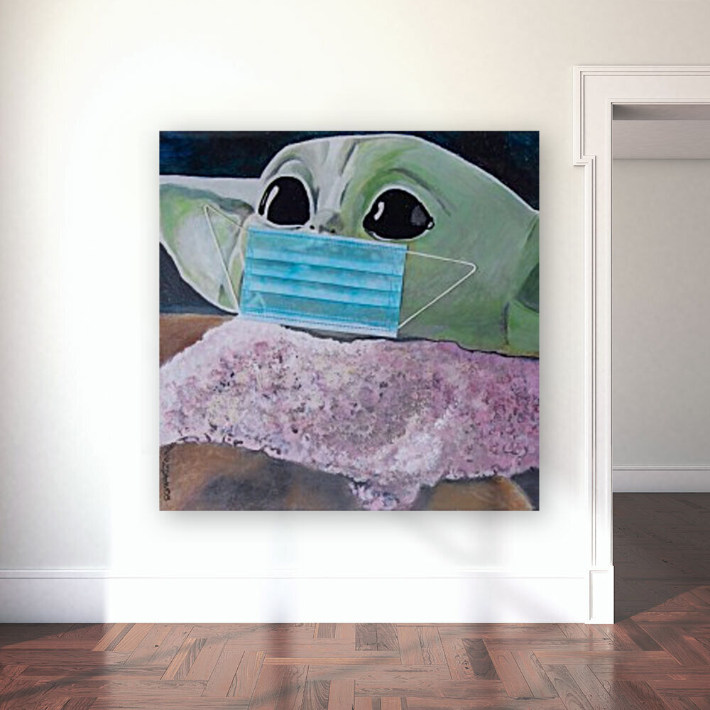 $125.00 – $1,100.00 Baby Yoda? – Inspired by Disney’s Mandalorian series, custom acrylic painting with a COVID-19 theme. Comes in three sizes:...[+]