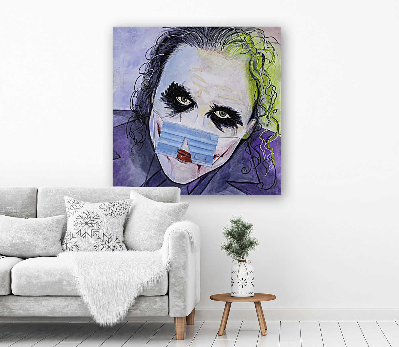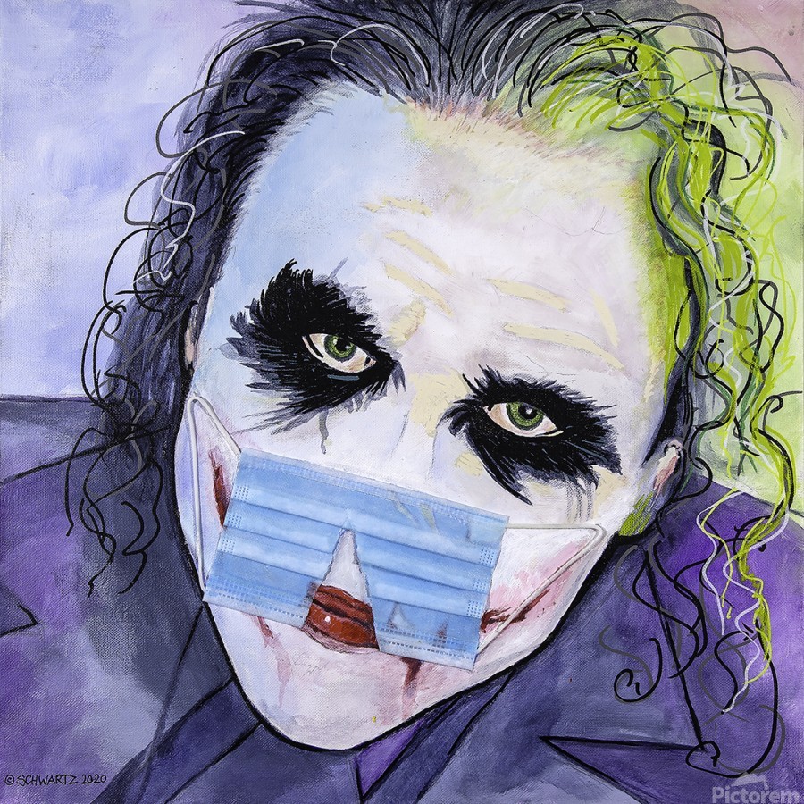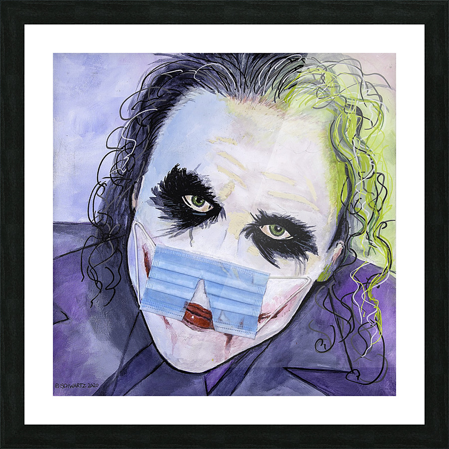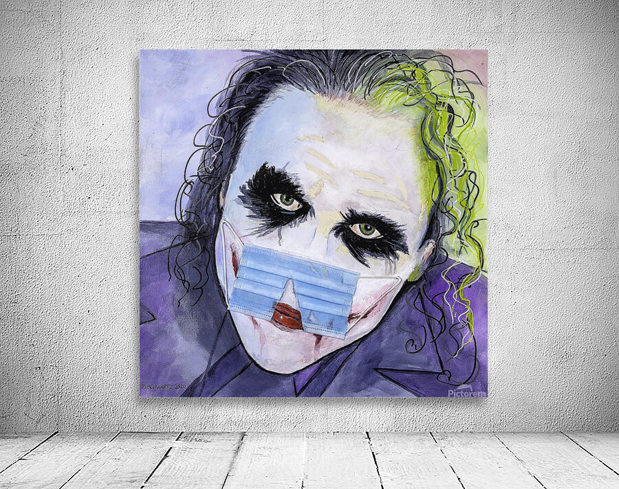 $125.00 – $1,100.00 Joker – Mr. J himself, custom acrylic painting with a COVID-19 theme. Comes in three sizes: 12 inches x 12 inches 24 inches x 24 inches 48 inches x 48 inches. Heavy-duty stretcher pine, with high-grade canvas. Double sealed with clear acrylic. Real COVID-19 mask applied to paint. Custom orders welcome, just contact me. Ships in 1 week from the order date. Every order is custom painted, so no two are alike, 100% custom. http://thesamschwartzartwork.com/product/the-joker-19/