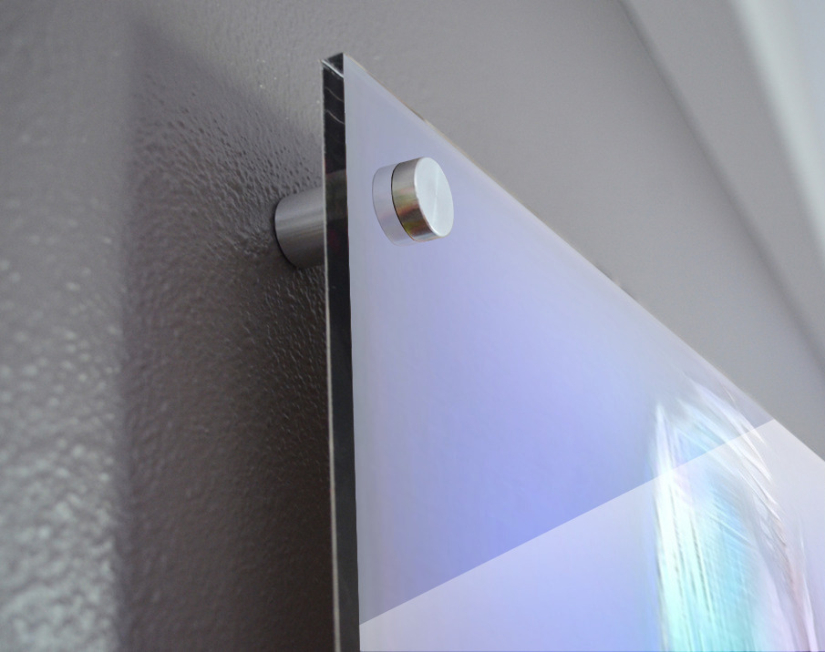 Printed to the edge - Ready to hang - provided with 4 premium polished aluminum stand off ( wall screws and mounting hardware provided )