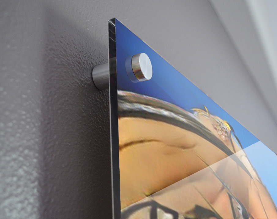 Printed to the edge - Ready to hang - provided with 4 premium polished aluminum stand off ( wall screws and mounting hardware provided )