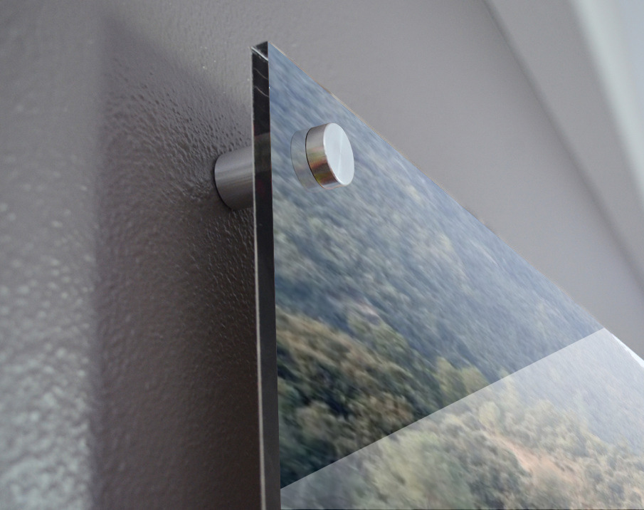 Printed to the edge - Ready to hang - provided with 4 premium polished aluminum stand off ( wall screws and mounting hardware provided )