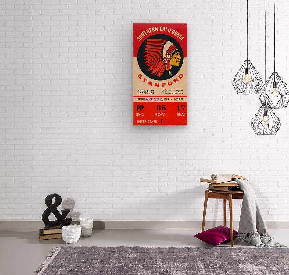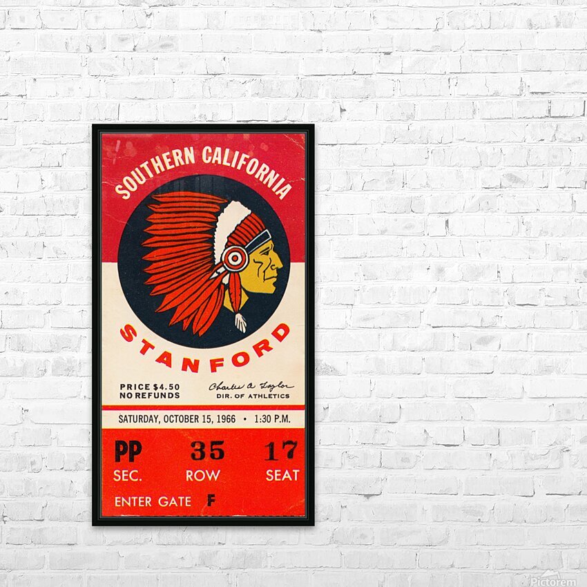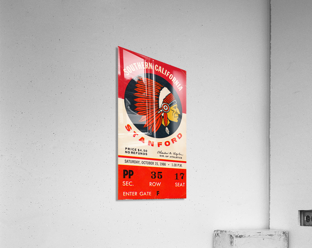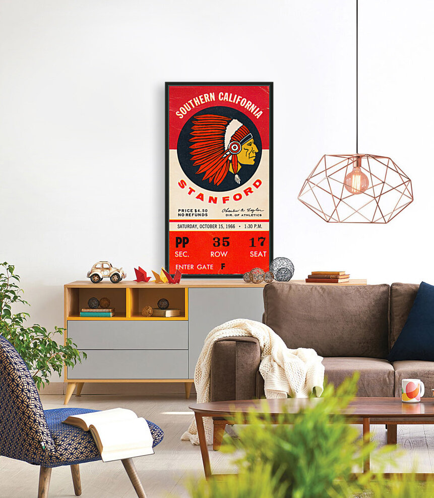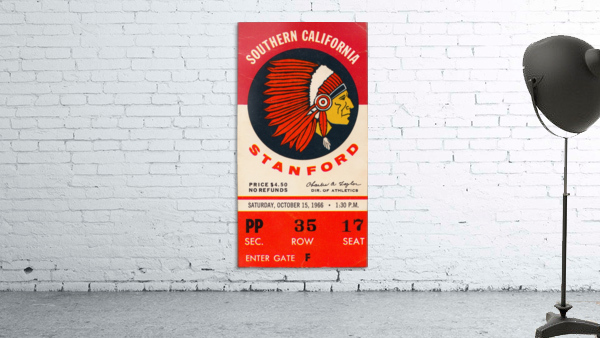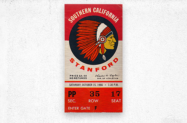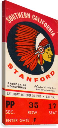 Stanford Indians vs. USC Trojans (1966) Row One™ historic college sports ticket art is not affiliated with, licensed, sponsored, or endorsed by any college, university, team, league, artist, other brand, venue, or licensing entity.