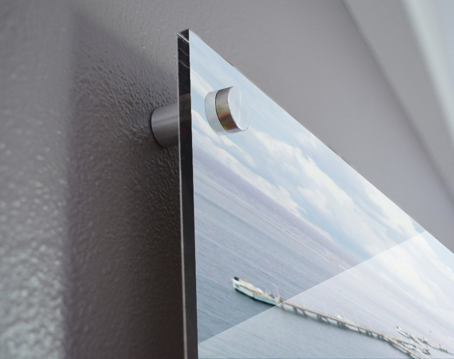 Printed to the edge - Ready to hang - provided with 4 premium polished aluminum stand off ( wall screws and mounting hardware provided )