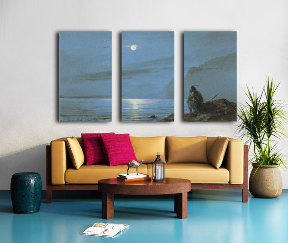 SOLDAT ECOSSAIS MEDITANT AU BORD DE L'EAU AU CLAIR DE LUNE JEAN ANTOINE THEODORE DE GUDIN  Canvas Print