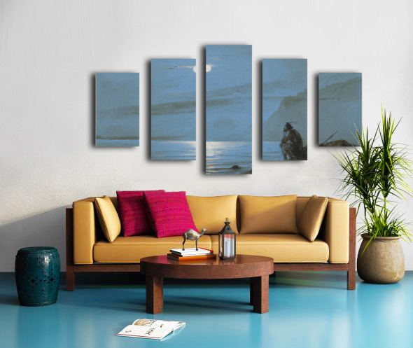 Soldat ecossais meditant au bord de l'eau au clair de lune Canvas print