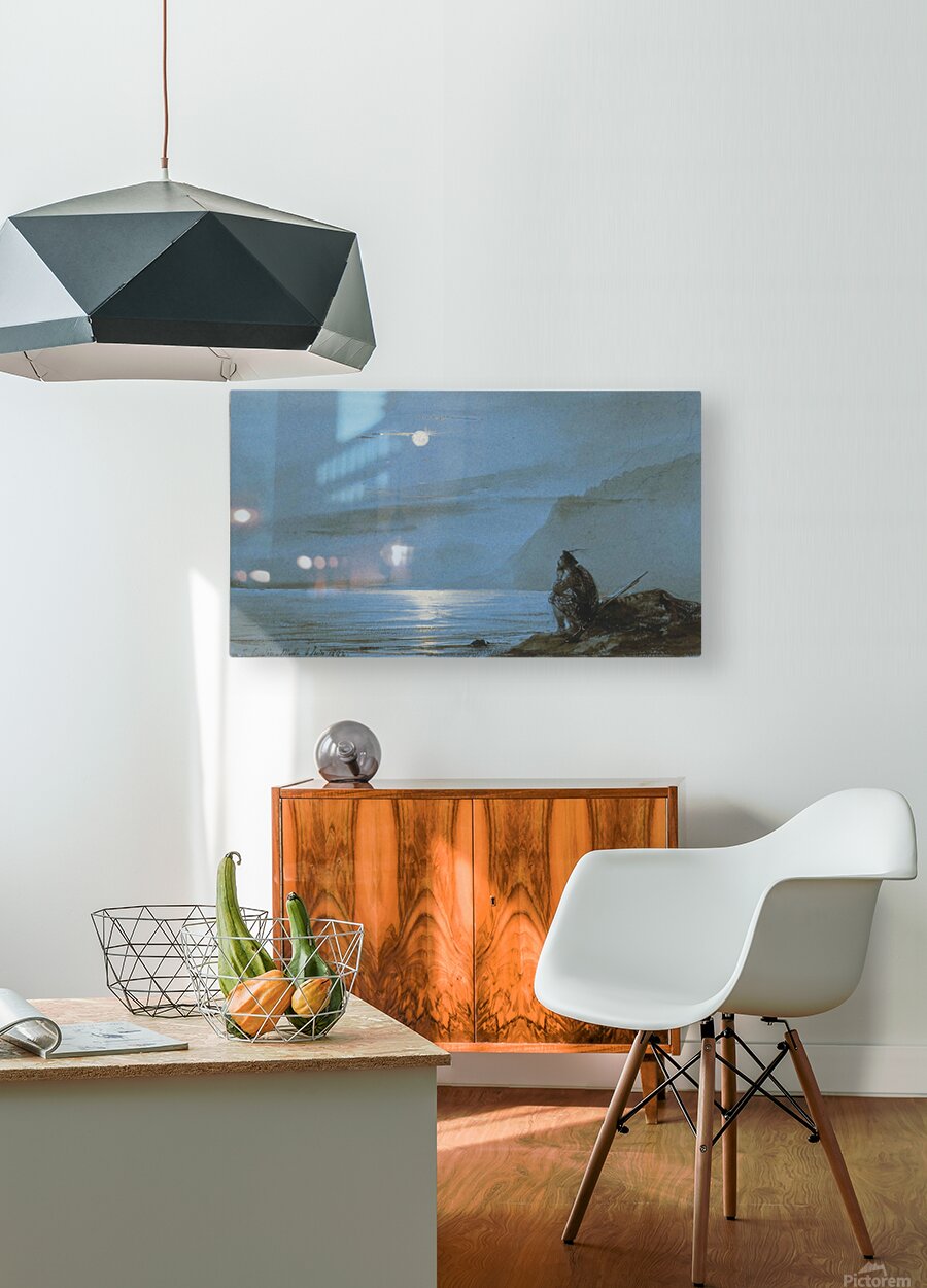 Get this artwork "Soldat ecossais meditant au bord de l'eau au clair de lune" in a framed print.