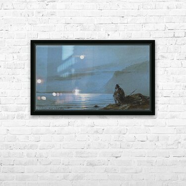 Soldat ecossais meditant au bord de l'eau au clair de lune Wall Decor Frame