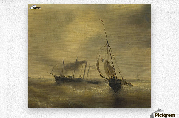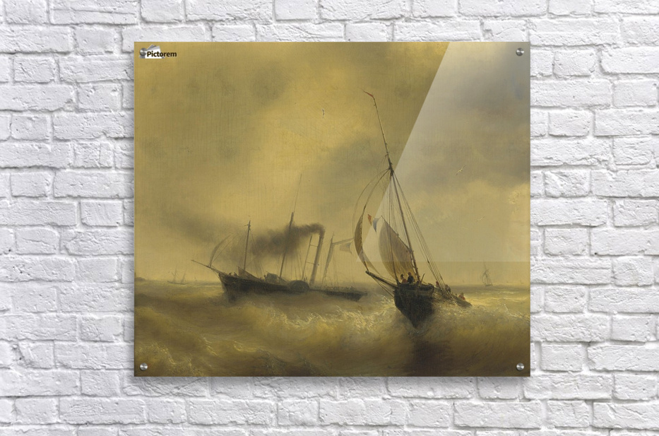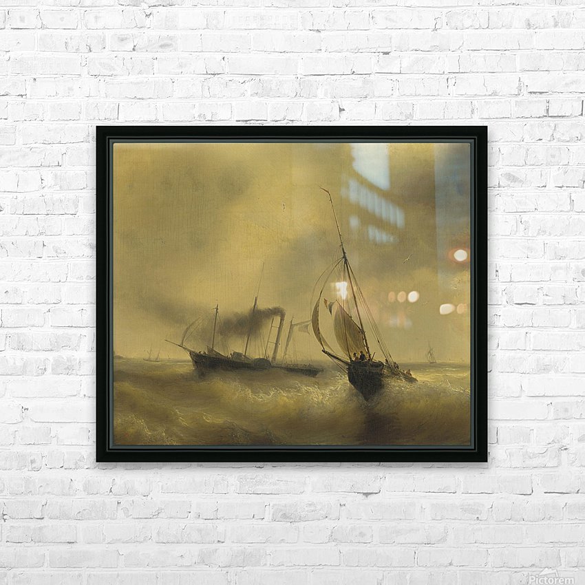 A paddle steamer passing a French fishing vessel in rough waters  HD Metal print with Floating Frame on Back
