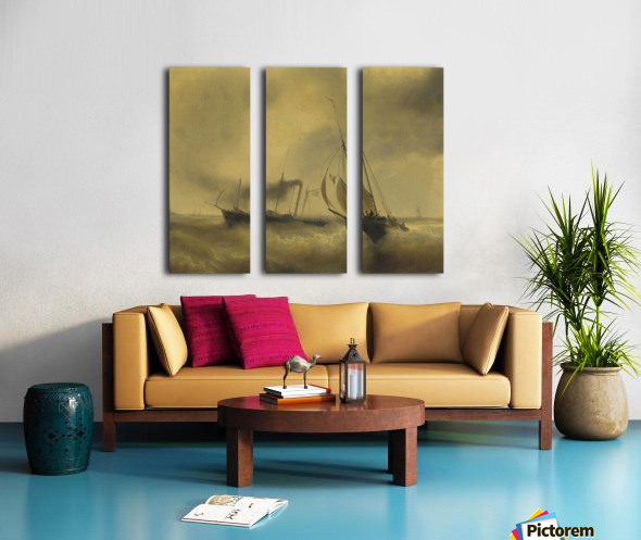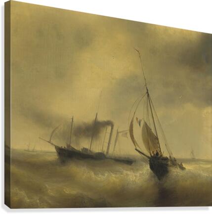 A PADDLE STEAMER PASSING A FRENCH FISHING VESSEL IN ROUGH WATERS JEAN ANTOINE THEODORE DE GUDIN  Canvas Print