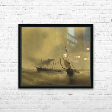 A paddle steamer passing a French fishing vessel in rough waters Wall Decor Frame