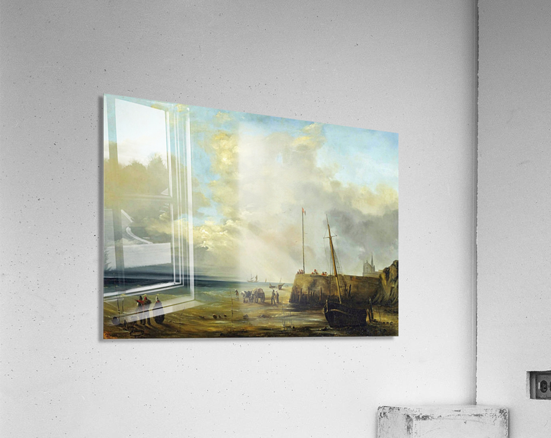 Fishermen at the Harbor Wall, low tide 1833 HD Sublimation Metal print with Decorating Float Frame (BOX)
