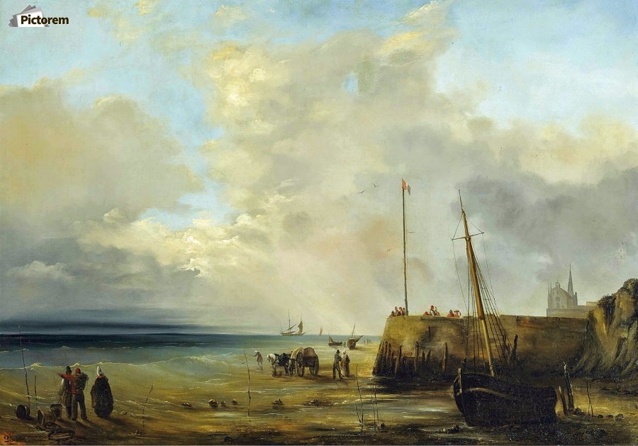 Get this artwork "Fishermen at the Harbor Wall, low tide 1833" in a framed print.