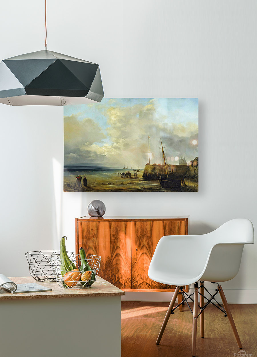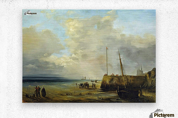 Fishermen at the Harbor Wall, low tide 1833 HD Sublimation Metal print