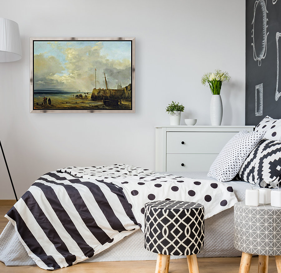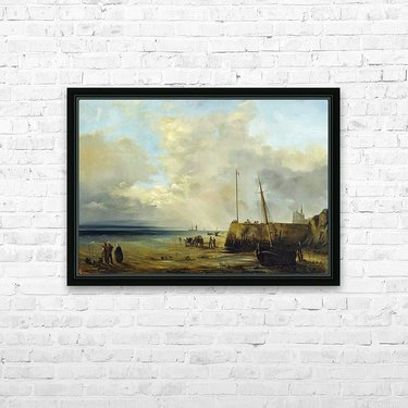 Fishermen at the Harbor Wall, low tide 1833 Wall Decor Frame