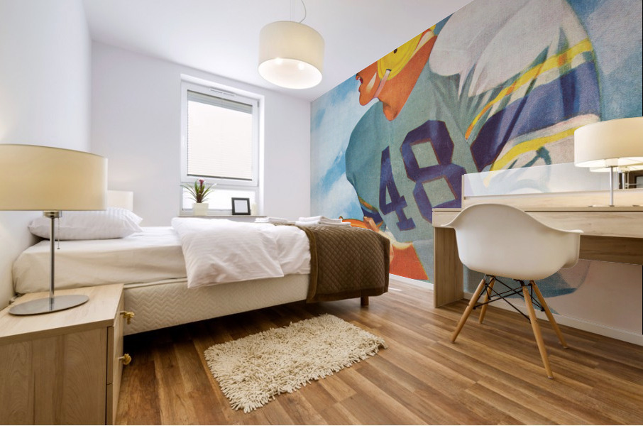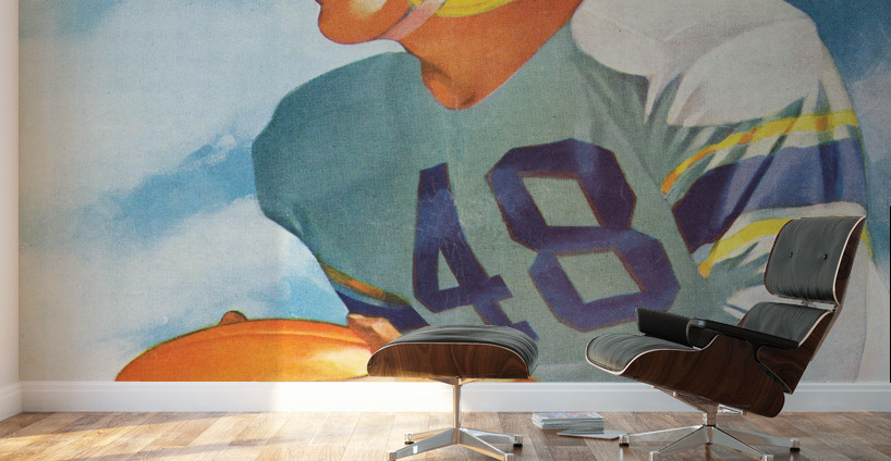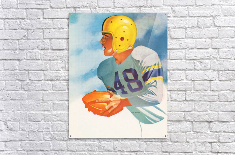 Explore 6,600 Historic Sports Prints | 2.5 Million Gallery Views | Row 1 | Vintage Lon Keller Football Art by Row One | This Row One Brand 1948 football player art shows a gridiron star wearing a #48 football jersey. This art was created from authentic 1948 Lon Keller football art in our collection and has been digitally restored for vibrant color and to remove creasing. This vintage football art will look fantastic in your game room or office. Use our Keyword Search Box to shop more "vintage football art". Row One Brand historic football art prints are not affiliated with, licensed, sponsored, authorized, or endorsed by any college, university, team, league, other artist, athlete, other brand, or any licensing entity. Only non-copyrighted memorabilia football art is used by Row One to create our historic football wall art prints. Derivative art © 2021 Row One Brand